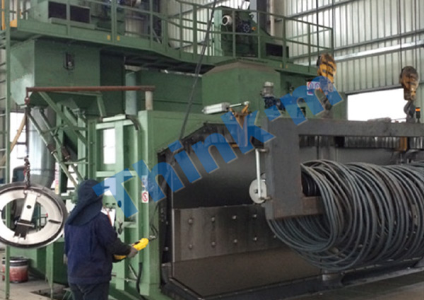 盘圆的抛丸请理,是利用高速抛出的铜丸,将线材表面的…